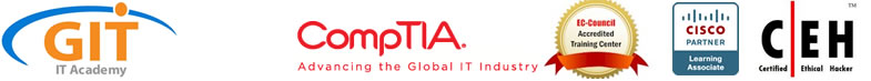| GIT Academy is an ISO 9001:2008 certified company , a leading provider of advanced IT Training courses established in the year 2002, offers complete training solutions on all major technologies for Cisco, Microsoft, EC Council, Comptia, Linux, Oracle Sun. GIT’s Instructor-Led courses utilize Authorized Vendor and custom developed curriculum. Our strictly managed program guarantees that training with certification provides the highest level of educational quality. | |||||||||||||||||