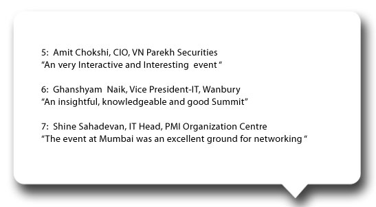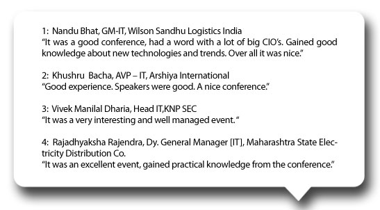 Shaping up the future of technology through intelligent insights and targeting the right set of qualified IT Communities, siliconindia has come a long way as an ideal platform to address strategic initiatives and manage businesses successfully across industries and verticals. Post recession, there have been paradigm shifts within the IT community. The term 'disruptive technology' has been used by CIOs often. The role of a CIO has changed from being an information officer to being an innovative officer. The strategies too, have changed for a CIO but what has not changed is their continuous hunger for technology adaptation and adoption. CIO Strategies Summit 2011 is one such dynamic forum that would address the challenges and opportunities ahead for business leaders to finalize the roadmap for the next financial year. CIO Strategies Summit 2011 is one such effort and one-stop shop to address such challenges ahead for the CIOs who would inspire the leaders of tomorrow. What the attendees at the Mumbai edition had to say