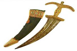 An exotic gold bejeweled Mughal dagger from India was sold for $314,000 in Rago Arts and Auction Center. It was bought by an anonymous private collector. This exclusive dagger has rubies, emeralds and diamonds set in it.