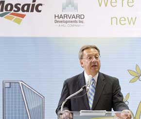 The Mosaic Company lists among the Fortune 500 companies. It manufactures potash and phosphate rich fertilizers. It is head-quartered in Plymouth, Minnesota, USA. It was founded in the year 2004. James T. Prokopanko is the CEO and President of the company.