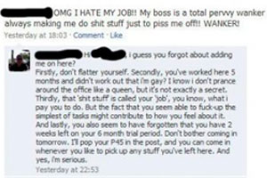 A woman has been fired from her job as she insulted her manager on Facebook.