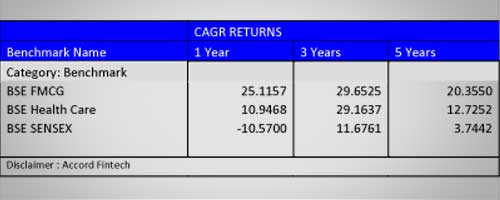 We can clearly see from the table given below that the FMCG and Health Care sectors have outperformed BSE Sensex over 1 year, 3 years and 5 years basis