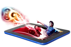 This is the cheapest budget 3D Android tablet available in the market as of now. The 3D goggles come along with the tablet as a promotional offer. The tablet has a 7 inch capacitive touch screen with a resolution of 800 x 480 pixels. The screen boasts of a five point touch support. It is powered by a 1.5 GHz Allwinner Boxchip-A13 processor and backed by 512 MB of RAM. The tablet comes with 4 GB of internal memory with a provision for a microSD slot which allows the users to expand the memory up to 32 GB. The tablet comes with a 2 mega pixel camera.