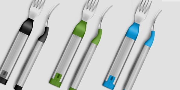 HapiFork by HapiLabs is an electronic fork powered by Slow Control, which helps users to monitor and track their eating habits. It measures the time that eaters take to finish their meal, amount of “fork servings” (the time taken to bring food from your plate to your mouth with the fork) taken per minute and intervals between fork servings. It tracks your progress by uploading via USB or Bluetooth to your Online Dashboard on HAPI.com.