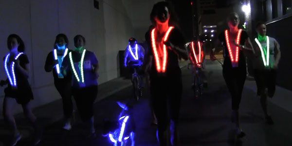 Optic Powered Vest- Fiber –Optic Safety Vest for cyclists and runners brings eye catching illumination to alert drivers to make it visible in the dark, rain or snow.