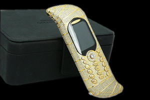 This luxury edition phone belongs to French jeweler Boucheron. Only eight cobra phones were produced all over the world. The phone is decorated by one carat round diamond, 439 artfully arranged rubies on to an absolutely garish cobra, two carat pear cut diamond and two emerald eyes. The Signature Cobra features 1.8 inch display, 1MB internal memory, expandable memory up to 2GB, supports USB, Bluetooth, GPRS, WAP and sadly no camera.