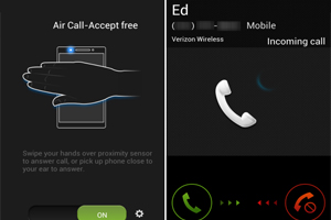 You are in the midst of enjoying a sumptuous meal when an important call comes in and you are worried on what to do with dirty hands? Air call allows answering or rejecting a call by just waving your hand over the screen. Even moving the phone next to your ear can get the call answered automatically.