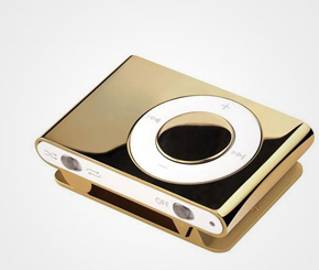 The gold iPod Shuffle is designed using 18 carat gold by German Company Xexoo. The device is not gold plated, but it is fully coated with 18 carat solid gold, only the sides and the navigation buttons are same as the normal iPod Shuffle. This solid gold luxurious Apple iPod Shuffle come with a huge price of $19,343 (around