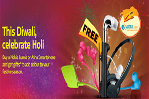 Nokia with their campaign “Celebrate Holi this Diwali with Nokia”, are looking to make their colorful handsets a hit among the people. Four Nokia Lumia smartphones will feature in Nokia’s Diwali 2012 offer.