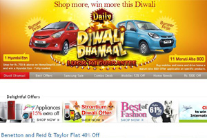With its competitors going in for amazing Diwali offers, HomeShop 18 also decided to come up with offers. When one opens the website the first thing that hits the customers’ eye is the line “Festive Bonanza - Up to 70 percent off Mobiles and Laptops”. For a gadget crazy nation like India this is indeed an offer that many will find hard to resist. Along with this if you shop for any product with the value