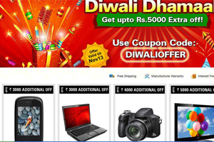 5,000 off on Television sets. This Diwali Dhamaal offer lasts up to 13th November 2012 and one will have to use the ‘DiwaliOffer’ coupon to avail additional discounts on the gadgets.