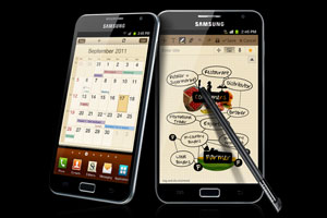 The Samsung Galaxy Note is a blend of smartphone and tablet, and sports a huge 5.3-inch screen. It is powered with dual-core 1.4 GHz Exynos microprocessor with Mali-400MP graphic chip, 1 GB of RAM and runs on Android 4.0 ICS operating system. It features a large HD Super AMOLED display with 1280x800 pixels of resolution, 16GB of built-in memory, SD card slot to expand memory up to 32 GB, 8 MP rare facing camera and a front-facing 2 MP camera for video chat. Other feature includes Bluetooth 3.0, WIFI, GPS, and HSPA+ for connectivity.