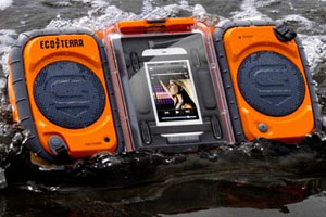 This device is meant to protect your MP3 player or cell phone from water, dirt, snow, and shock along with giving you the fun of music when you are enjoying you picnic or water sports. Eco Terra sports two large waterproof stereo speakers with four C-cell batteries. It comes with a unique design so that when thrown into water it rotates itself and floats by making the speakers are pointed up. It costs around