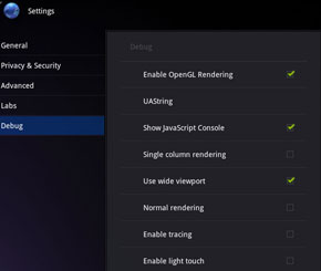 The activation of hidden debug menu provides a number of setting to speed up the internet experience. There is an option called Enable OpenGL Rendering in the debug menu. You have to deselect the option for faster browsing. But this setting works for only some of the website to load faster.