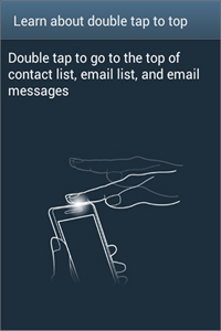 If you've scrolled down a long list and want to quickly get back to the top, simply double tap the top of the phone and it jumps back to the top. This is app independent and eliminates the need to find a small scrolling control.