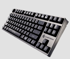 The CoolerMaster is a compact and portable gaming keyboard. It features laser carved keys for longer life and performance and multimedia shortcuts too. The entire keyboard is rubberized for better grip while playing. This keyboard is available for