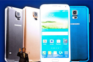 Samsung Galaxy S5: Galaxy S5 is the latest flagship Smartphone from the South Korean electronics giant Samsung which was released on 11 April 2014. It is an improved version of its siblings, placing particular emphasis on refined user experience, enhanced build quality, dust and water resistance, and updated camera and security measures like fingerprint scanner. S5 is made up of plastic excluding the spotted leatherette back. This latest Samsung variant comes with 5.1-inch Full HD Super AMOLED display with 1080 x 1930 pixel resolution.