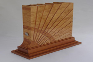 Flightline is a classic sun burst design, inspired by the Wright Brothers Memorial in Kill Devil Hills, North Carolina. It has a PC inside and on the outside it gives of a posh executive’s desk ornament look. The wood chosen to construct this are quilted maple, maple burl, mahogany, lacewood and aircraft grade birch plywood. Inside lies a 4mm Thin Mini-ITX motherboard with intel i3 processor, 8GB syatem memory and 60GB mSATA SSD.