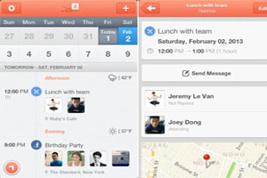 Sunrise Calender (Free for iOS): Sunrise Calendar app comes with stylish and colorful user interface, and is an effective tool for organizing your schedule. By linking to your accounts such as Facebook, LinkedIn, iCloud, and Gmail, it integrates birthdays and appointments to its slick user interface. It offers complete information covering what users have done in the past and what they need to do in the future. What makes sunrise calendar an exceptional app is that it provides information visually, such as your contact image and icons indicating climatic conditions. While you travel, the timezone support will automatically adjust your appointment times to the exact hours. The weather feature of this app is also a useful add-on to plan your hectic days. As this app boasts Google connectivity, you can add location to the events through Google search. For instance, if you want to meet a person at the restaurant, start typing the name and it will display on the location lists. Just tap it and the address will be automatically saved to the event. You can set this app as default mapping service rather than using Apple Maps. When you hit on the address bar, it will display the option to give you directions.