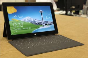 Microsoft’s first tablet seems at first similar to the first iPad. It’s thick, heavy and rough. It runs Windows RT, a version of Windows 8 adapted for tablets. It comes with a version of Microsoft’s Office suite and the ability to connect to wireless printers and USB drives. The screen resolution is 1,366 by 768 pixels, placing it in the low-resolution category. It’s the tablet for those who want to take their writing on the go. The basic model starts out with “32 Gbs” of memory, but interestingly, only 16 Gb is available to the user. It accepts memory cards of up to 64 gigabytes, though. The poor thing is that it doesn’t run standard Windows applications. It will run only programs specifically adapted for Windows RT.