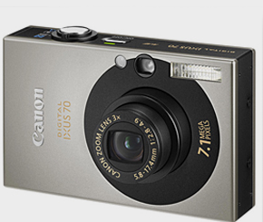 Measuring just 19.4mm thick, the Canon Digital IXUS 70 is the slimmest compact camera in Canon's extensive lineup. Inspired by the original IXUS model, the Canon IXUS 70 offers a 7.1 MP, 3x zoom lens equivalent to 35-105 mm, and a 2.5 inch LCD screen.