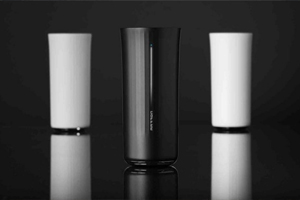 Made of a glass-like material, the cup holds 385 ml of liquid. When a beverage is poured in, text on the side reveals what drink is inside. The sliding lid of the cup is spill proof and it has a non-stick interior, making it easy to clean according to the company.