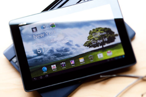29,890 (in eBay for 32 GB model) for its Quad-core NVIDIA Tegra 3 processor, 1,000 MB RAM and Android 4.0. It also features 10.1-inch WXGA IPS capacitive pressure-sensing multi touch display, micro SD card slot, micro HDMI port, 8 MP main camera, 1.2 MP front camera and an optional docking station for QWERTY keypad.
