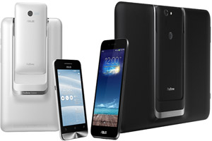 Asus announced no fewer than five new Android devices. Of them, the PadFone X and PadFone Mini caught our eye. These are smartphones and tablets in one device. The PadFone X, which will be sold by AT&T later this year, features a flagship-class smartphone with a 5.5-inch screen. It docks with a 9-inch tablet sled. While the smartphone serves as the brains behind the device, the tablet sled has a huge screen with its own battery. The combo allows users to carry a smartphone and instantly transforms it into a tablet by docking it with the tablet piece. The PadFone Mini is a smaller version, offering a 4-inch smartphone and a 7-inch tablet. The PadFone Mini will be available for $249. Pricing for the PadFone X has not yet been announced.
