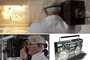 The Ghetto Blaster weapon was never used by Bond, but was in development in Q's lab. It is a rocket launcher cleverly concealed within an 80's model portable stereo system, also known as "Boom Box" at the time.