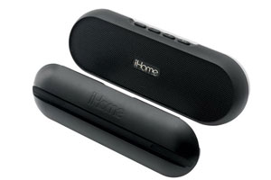 iHome iDM12 is a wireless portable speaker system for your iPad, iPhone, iPod and any other Bluetooth enabled devices. The cylinder shaped iDM12 is more than 7 inch long. The single Micro-USB connector at the back takes works as power and music port. There is a small clip cover in the back that is actually a stand to keep the speakers upright.