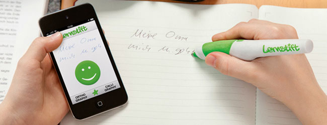 Users can choose between two functions: Calligraphy Mode — pointing out flaws of form and legibility or Orthography Mode — recognizing words and comparing the word to a language database. If the word isn't recognized, the pen will vibrate, according to Daniel Kaesmacher, the 33-year-old co-founder of Lernstift from Munich. The other co-founder, 36-year-old Falk Wolsky had the idea for the pen last year while his 10-year-old son was doing his homework.