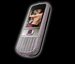 The Nokia 8800 Arte is designed by Peter Aloisson using the solid 18 carat white gold and decorated with 680 pink and white brilliant cut diamonds worth over 21.5 carat. The phone comes with 2 inch water resistant screen and a 3.15 MP rear camera with auto focus.
