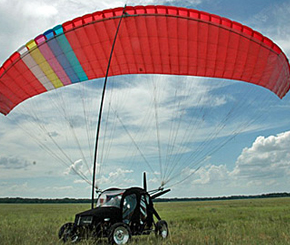 The I-Fly Maverick is under development, it is designed to be an easy-to-use on air and road vehicle. It has a propeller in the back, a rainbow colored flex wing and is equipped with one of the largest powered parachute.