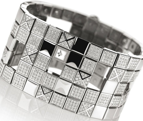 This beautiful looking watch is designed by Jaeger-LeCoultre. It is made up of 18 carat white gold, silver and 576 diamonds, it also comes with 400 diamonds. This watch uses the mechanical manually wound Jaeger-LeCoultre Calibre 101 movement. It looks more like a bracelet than a watch. Price: Unknown.