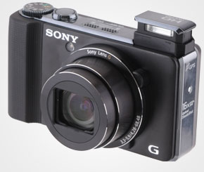 The Sony Cyber-shot DSC HX9V is a high-end full featured camera suitable for travelers. This camera sports a 16.2 MP Exmor R CMOS image sensor with a Sony BIONZ processor, a 16x optical zoom and is capable of full 1080 pixels HD video recording with stereo sound. The Sony BIONZ processor helps to take crisp and clear images without blur even on full zoom with camera shakes.