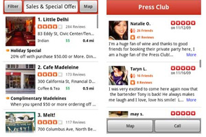 Yelp searches and gives a list of all the nearby businesses along with reviews and then it lets you check into those places like the options provided by Foursquare and Facebook. What this app helps you to do is filter out choices and visit the best places, so that dining out is a fun and tasty experience.