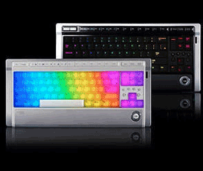 Each key on this 1.75-pound keyboard can be programmed to light up in one of seven colors.One can assign colors to commonly used keys, for instance, the Tab or Return buttons to make them stand out, or color-code an entire bank of keys. You can create up to four preset color schemes and toggle among them with the press of a button. It cost around