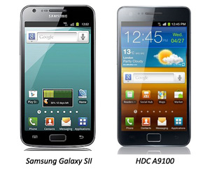 Samsung Galaxy SII, one of the most popular Android smartphone has one local enemy named HDC A9100 which costs less than half of Galaxy SII. Samsung Galaxy SII costs around
