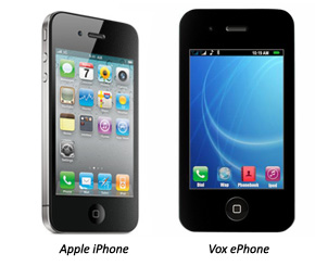How to Identify: Vox ePhone looks like iPhone from all the angles, but comes with a Vox logo at the back.