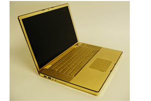 If you think MacBook Pro makes for an expensive buy in itself, then how about gold plated one. This laptop is coated with 24-carat gold and it shows off its Apple logo in multi color diamonds. 53 diamonds of 12.5 Carat each is made use of to bring out the signature Apple symbol. Intel Core 2 Duo P8400 processer powers the device. The NVIDIA GeForce 9600M graphics adapter enhances the 15-inch display of 1440x900 pixels.