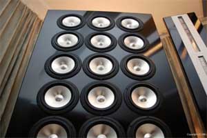 The Mega Trend Mk III can literally be called ‘The wall of sound,’ as the speakers do form a wall at seven feet in height and 3 feet wide, dimension of just one speaker and they come in a pair. The speaker system comes with 24 eight-inch woofers and a ribbon line speaker tower for the high end. The speaker system priced at
