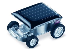 This tiny solar power wonder measures only 33 x 22 x 14 mm. It is a fully-functional solar powered vehicle which had a small photovoltaic panel on top. The tiny solar panel powers the electric motor. In spite of it size this tiny racing car can compete with the best of racing cards.