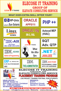 Elecose IT Training was founded in 2006 by group of Elevate Consulting Services ( with proven expertise in varied technology domain) as a Center for education, training software development at delhi,Faridabad,and USA.ECS consists of The Best faculty of the country with respect to Quality education and training, which includes.