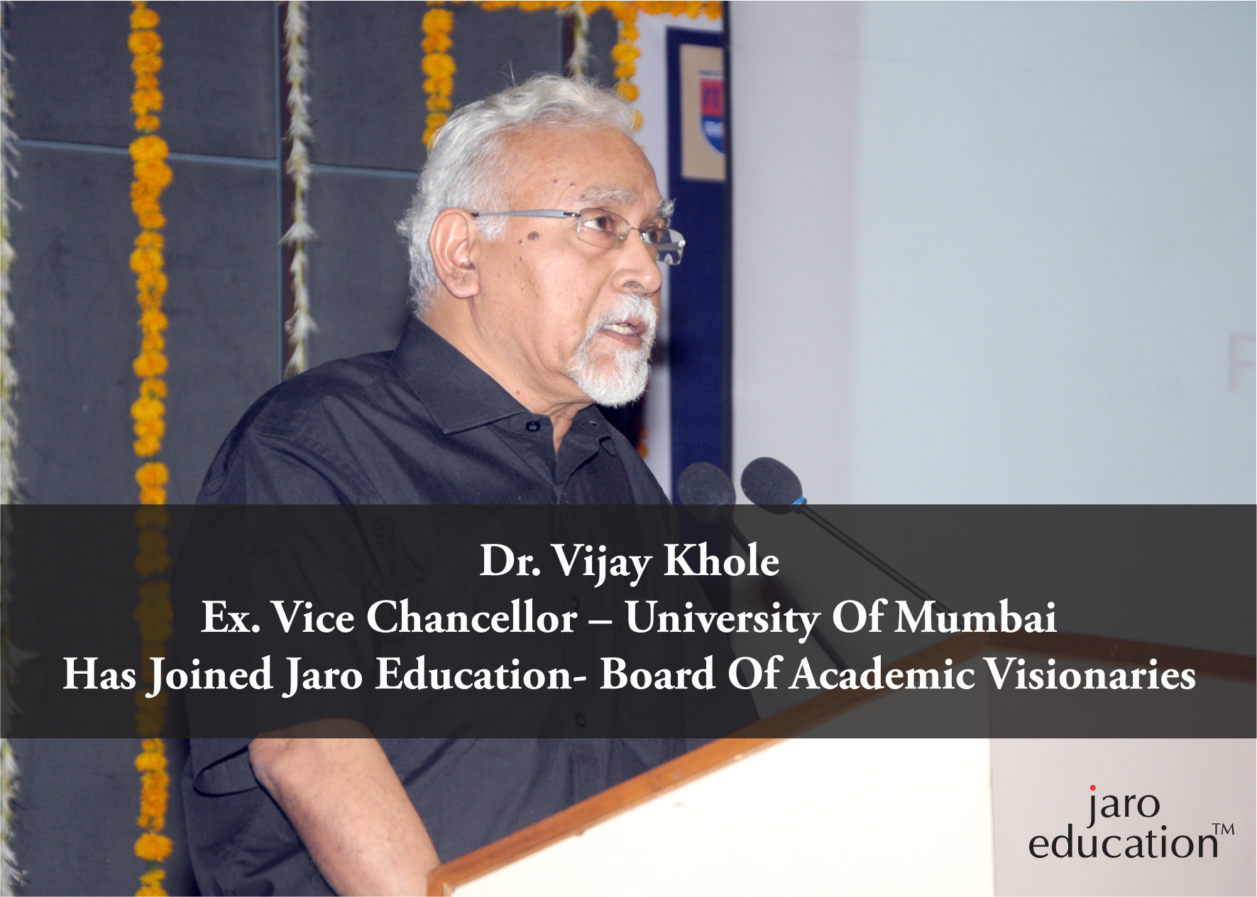 Jaro Education, a reputed online education institution takes great pleasure in addressing you the presence of a new proficient member in our institution – Prof. Dr. Vijay Khole, the Ex Vice Chancellor of Mumbai University. A great academician with experience of 40years and more in the education industry, Dr. Khole has been influential in contributing in various higher education policies and practices.
