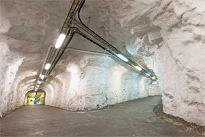 The Green Mountain Data Center features enormous concrete buildings that are located in the caves of a mountain on the shores of island Rennesoy of Norway. This unique structure which once served as ammunition storage for NATO, now contains racks of servers that provide data to multiple companies. The Green Mountain Data Center cools itself with the water from a nearby fjord which flows below at 8 degrees C, constantly throughout the facility. This construction is set to open for customers by the end of 2012.