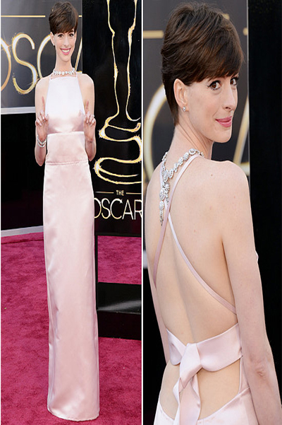 Nominated for the Best Supporting Actress Category, Anna donned a pale girly pink Prada ensemble that was backless and crossed to accentuate her back. Her makeup was kept simple while her jewels spoke out loud for her. Her tiffany square neck jewellery was a bold choice, because the layers of the actual neck-piece stood at her back. Her bracelet gave an elegant look to her delicate hands. The Prada outfit was of satin material that sparked a flow of poise on her curves.
