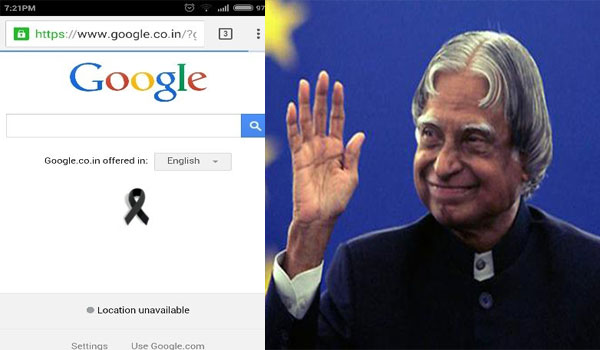 BANGALORE: Internet giant Google had offered their respects to former president A P J Abdul Kalam dismissal with a black ribbon doodle set on its homepage,reports TOI.