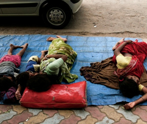 Nearly 100 people use the parking lot, the square of dirt on the edge of the cotton-sellers' district in the Indian capital to spend the night, reported Tim Sullivan in a report by The Associated Press. All the people asleep in handmade wooden cots jammed one against the other while dozens more sleep around a tattered empty fountain nearby. By dawn the overnight community disappears. Its residents carry their scanty possessions in plastic shopping bags until nightfall, when the parking lot once again turns into a makeshift outdoor motel.