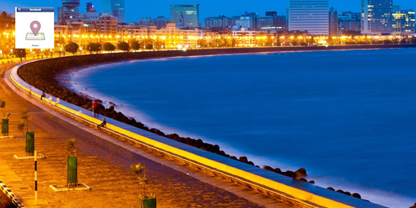 Marine Drive is a 4.3-kilometre long boulevard in South Mumbai in the city of Mumbai. It is a 'C'-shaped six-lane concrete road along the coast, which is a natural bay. At the northern end of Marine Drive is Chowpatty Beach and people visit this place as it is quick relief for the boring city life.
