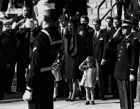 19. Nation’s Grief: John F. Kennedy Jr., the elder son of U.S. President John F Kennedy, salutes his father's coffin along with the honor guard Nov. 25, 1963.